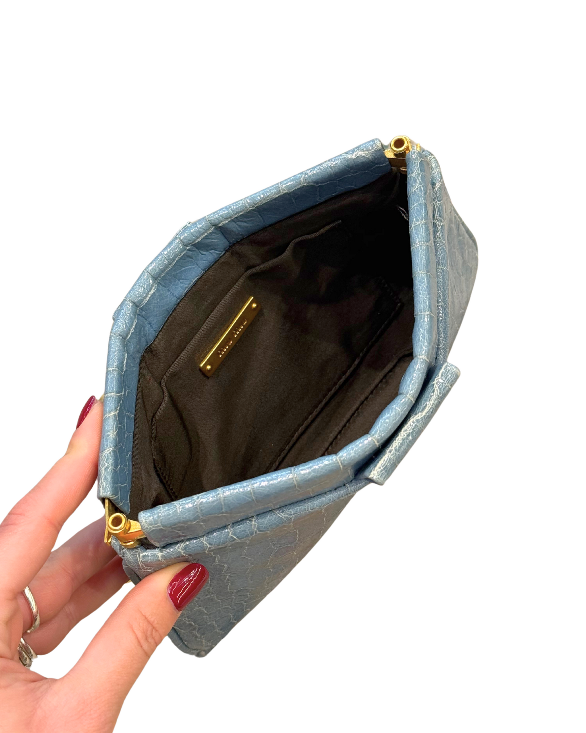 POCHETTE MIUMIU AZZURRA STAMPA COCCO