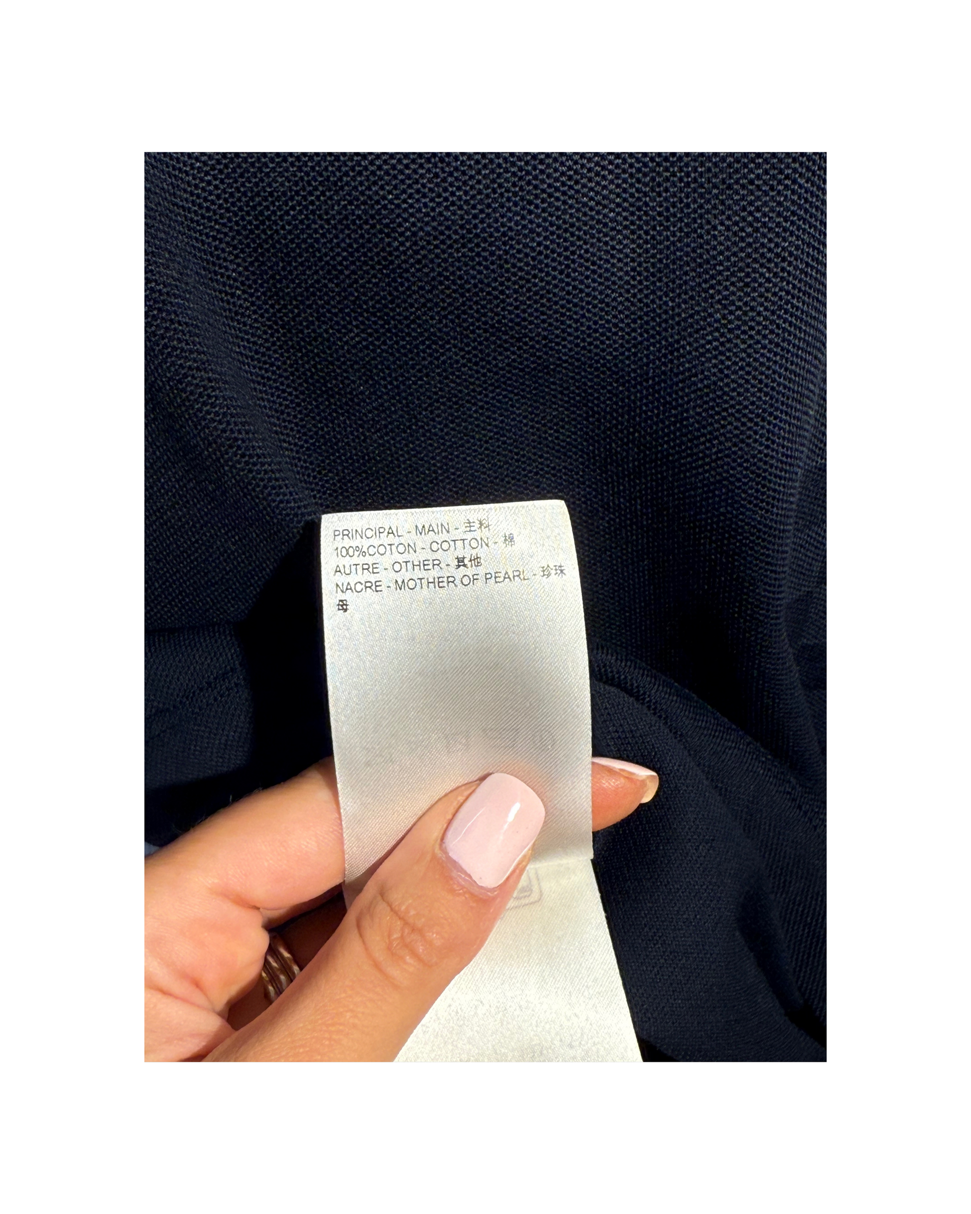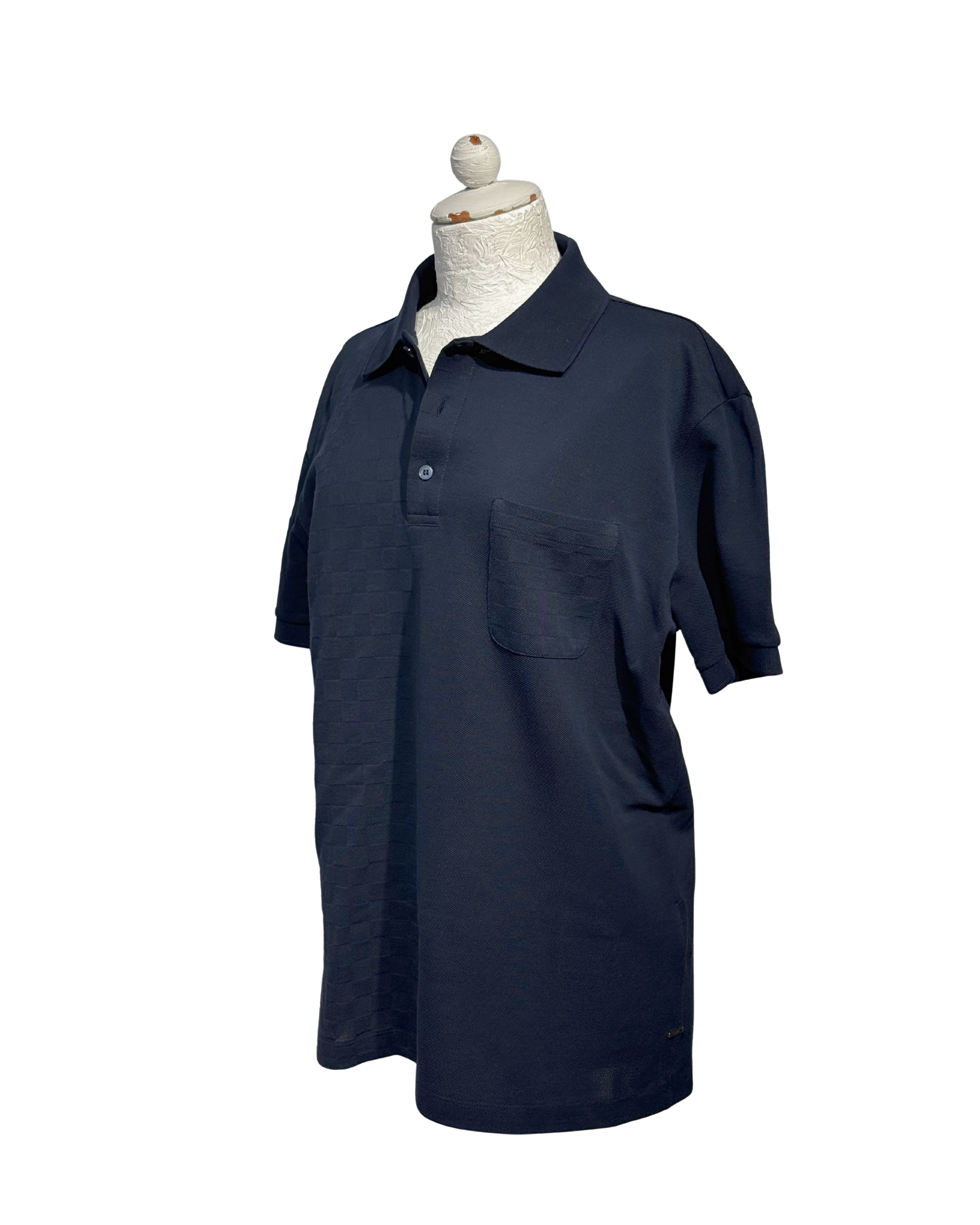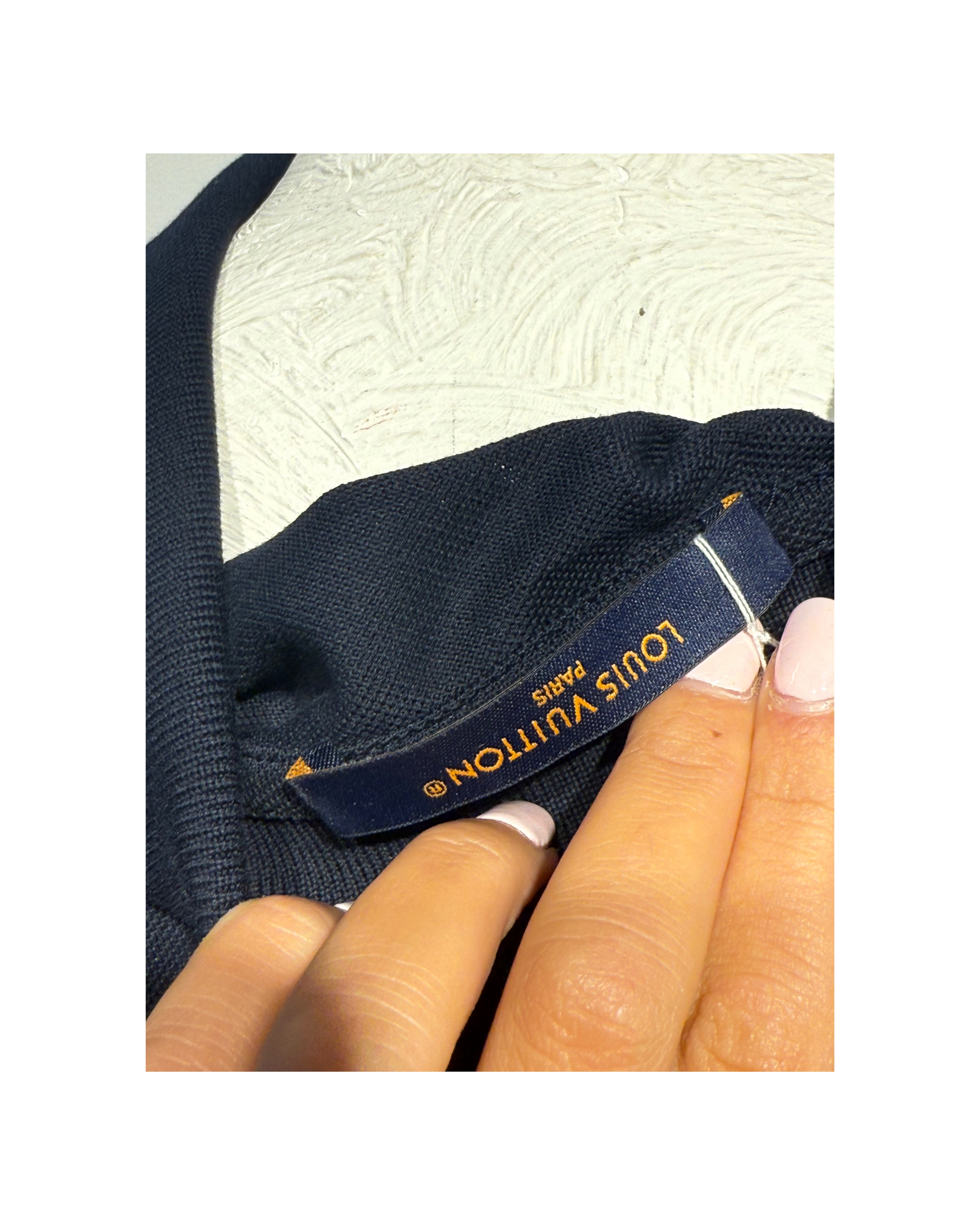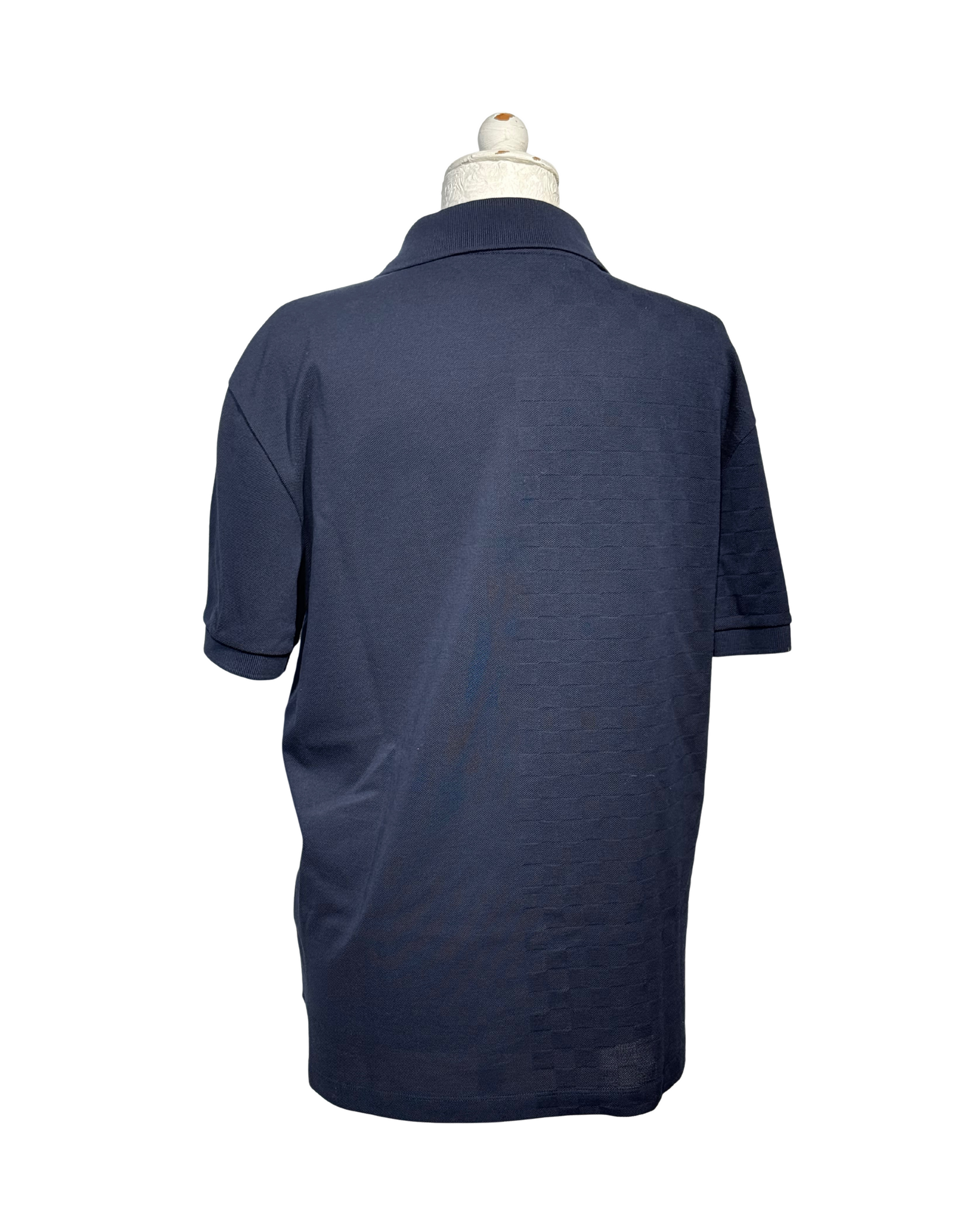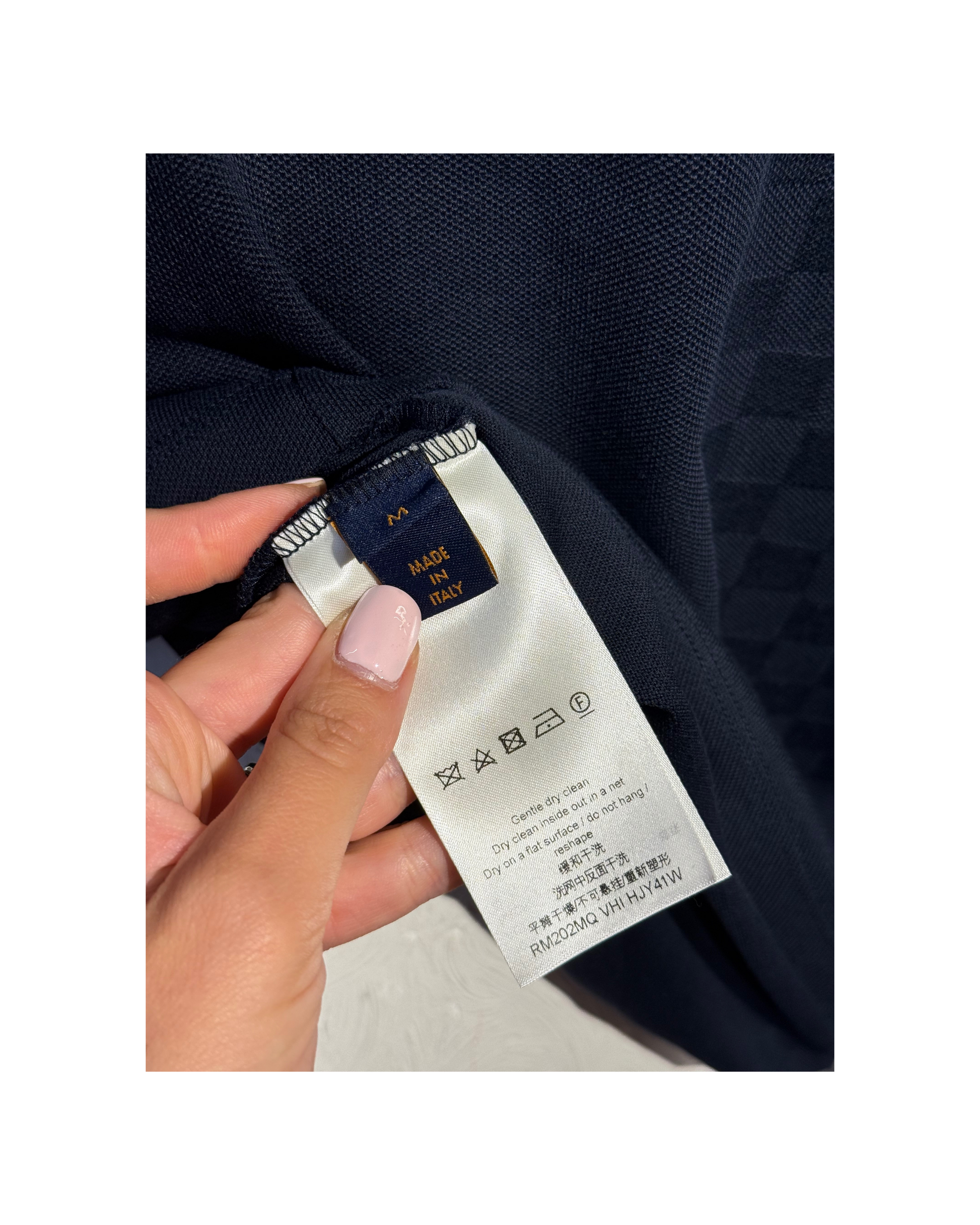 Elegante e senza tempo, questa polo firmata Louis Vuitton unisce la raffinatezza del design alla comodità del cotone 100%. Il lato sinistro del capo presenta il classico motivo Damier tono su tono , emblema della maison, mentre il lato destro resta liscio per un effetto grafico sofisticato ma discreto.