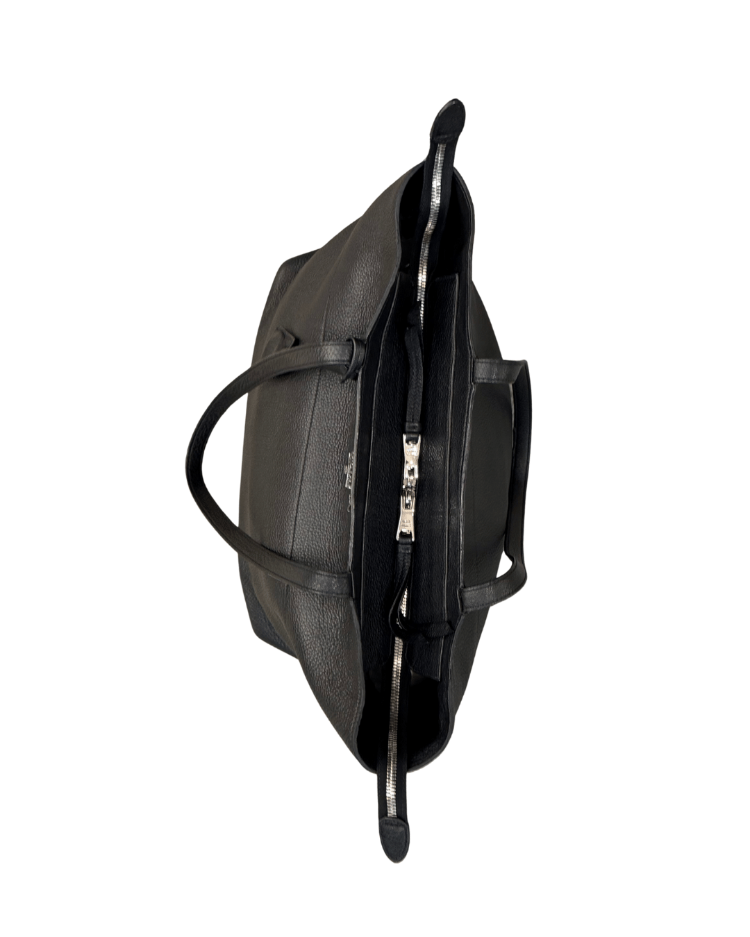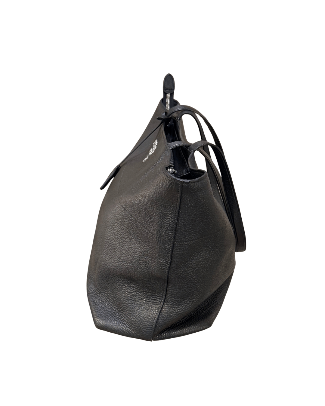 Prada shopper in pelle nera, realizzata in morbida pelle martellata, capiente e versatile, perfetta come borsa da lavoro o per l’uso quotidiano.