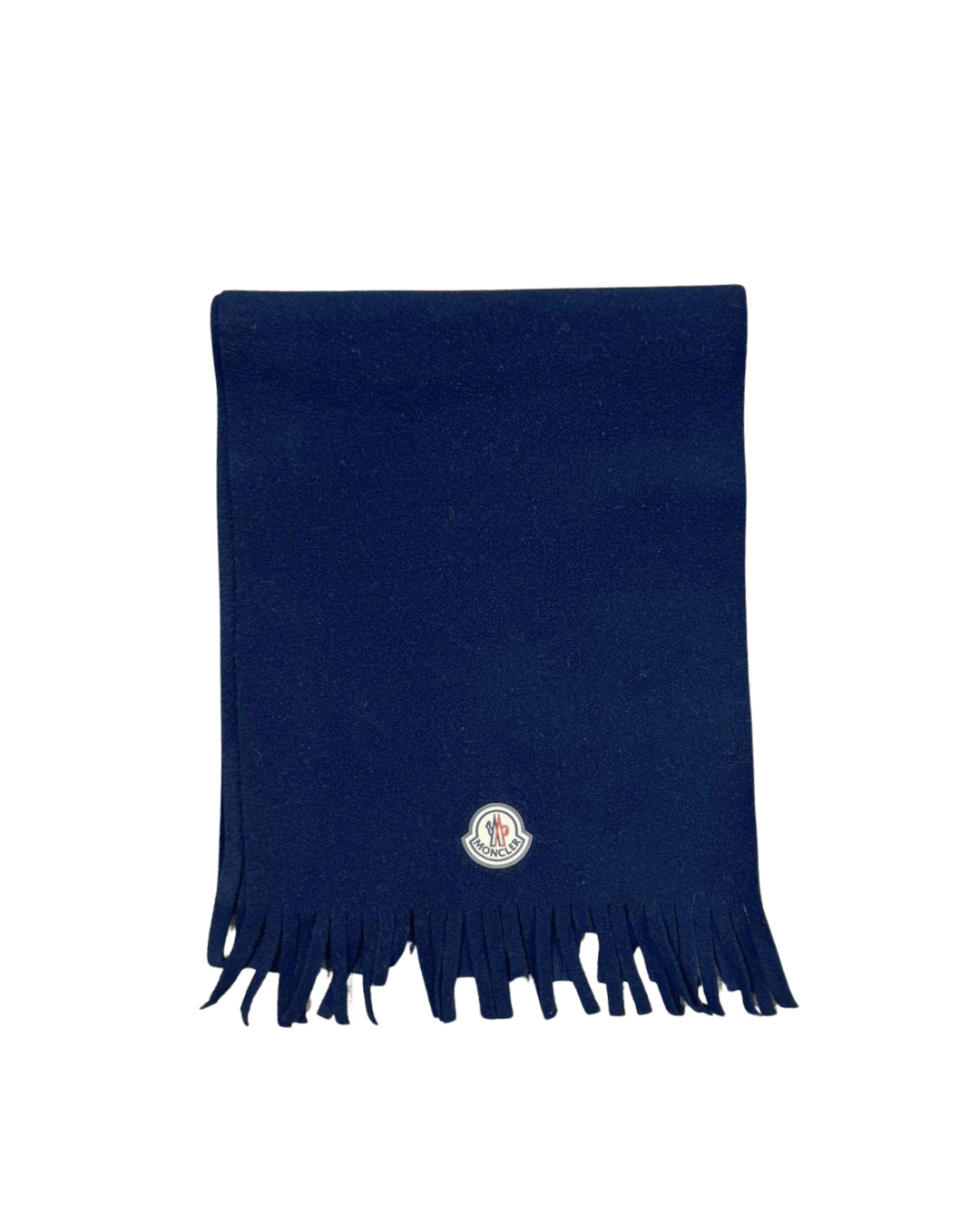 Sciarpa Moncler realizzata morbida e avvolgente, ideale per affrontare la stagione fredda con stile e comfort.Il modello è proposto in una raffinata tonalità blu navy, estremamente versatile e facile da abbinare, sia su cappotti eleganti che su look più casual. Le frange sul fondo donano movimento e un tocco classico, mentre il logo Moncler applicato aggiunge un dettaglio iconico e riconoscibile, senza risultare eccessivo. Realizzata in poliestere
