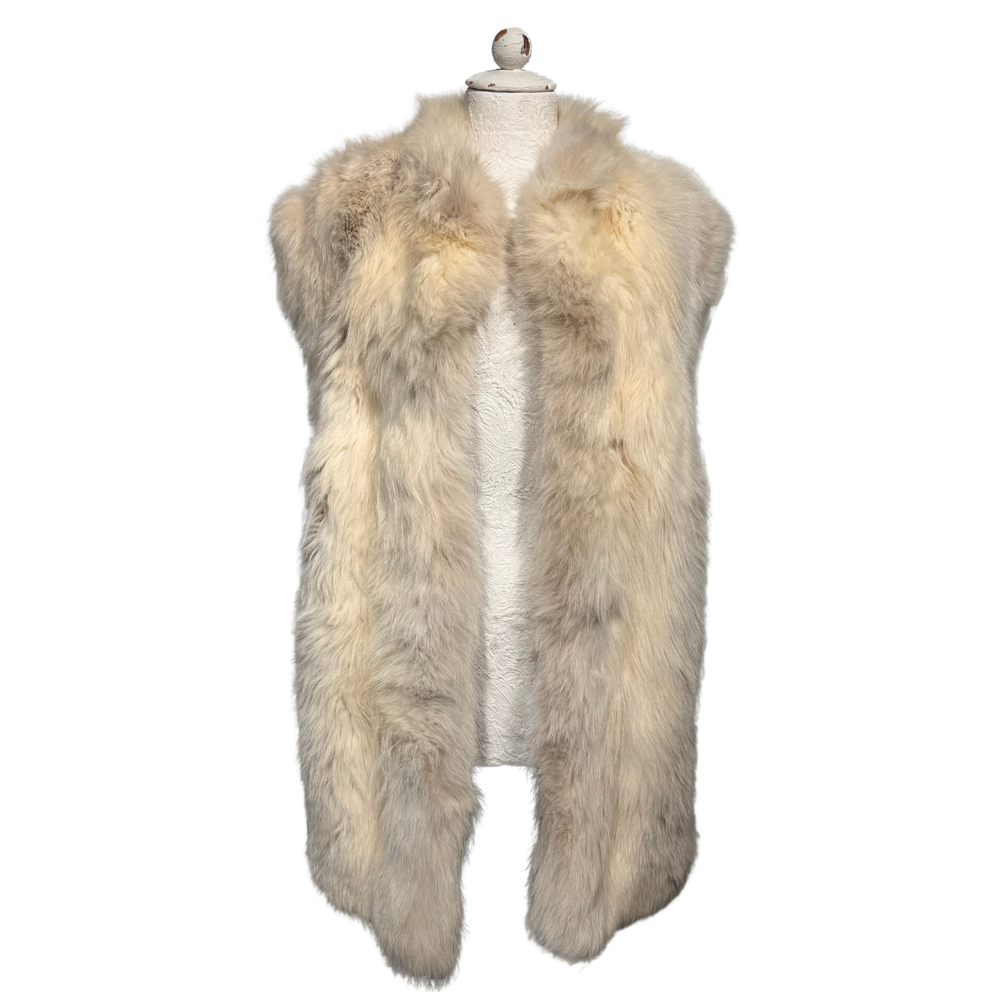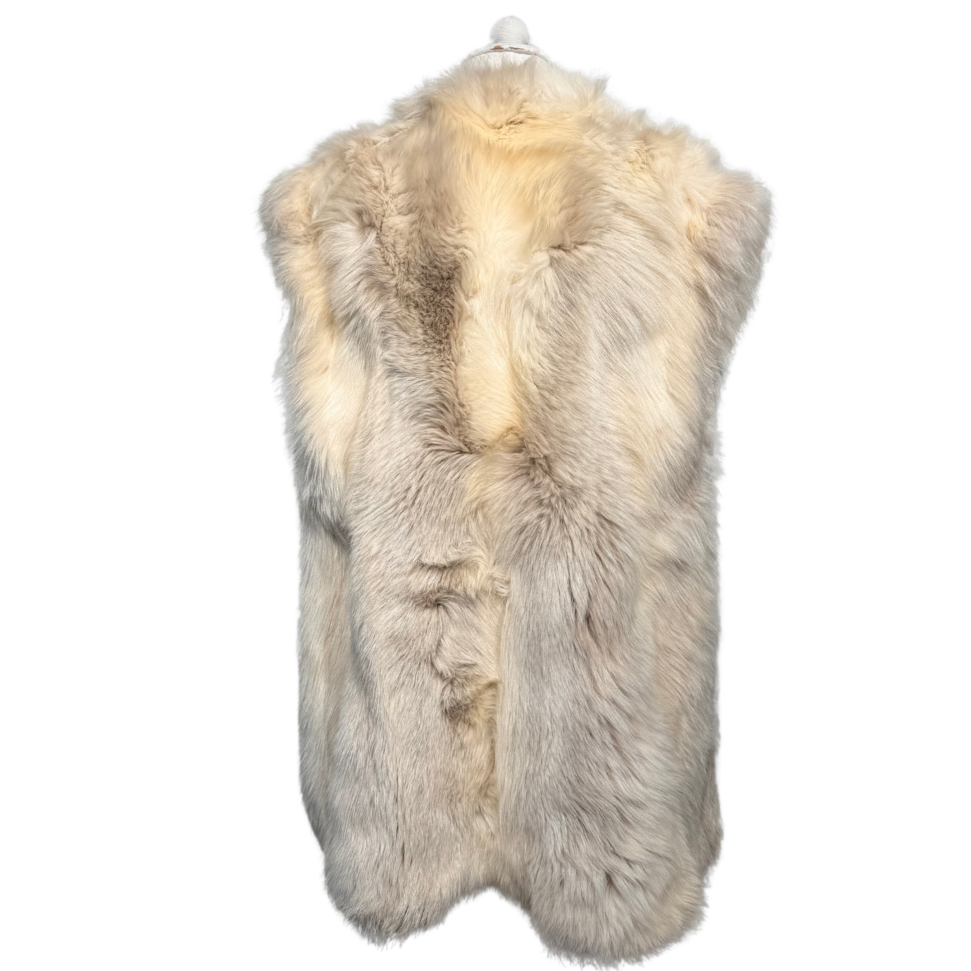 Smanicato in pelo di volpe chiara . Apertura frontale con gancetti. Fodera interna toni del marrone.