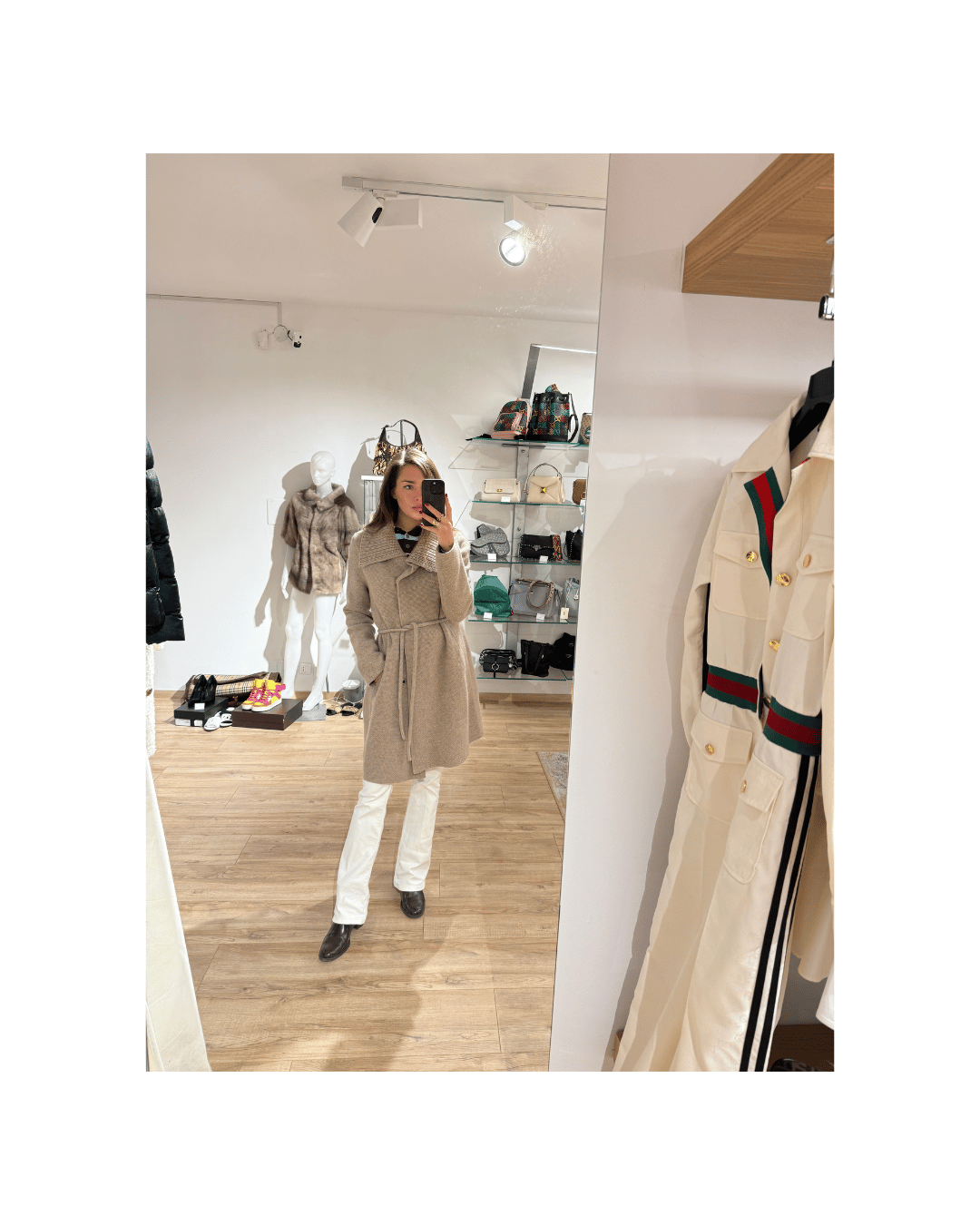 Il colore beige caldo e la texture morbida e compatta lo rendono un capo intramontabile, perfetto per la stagione fredda.