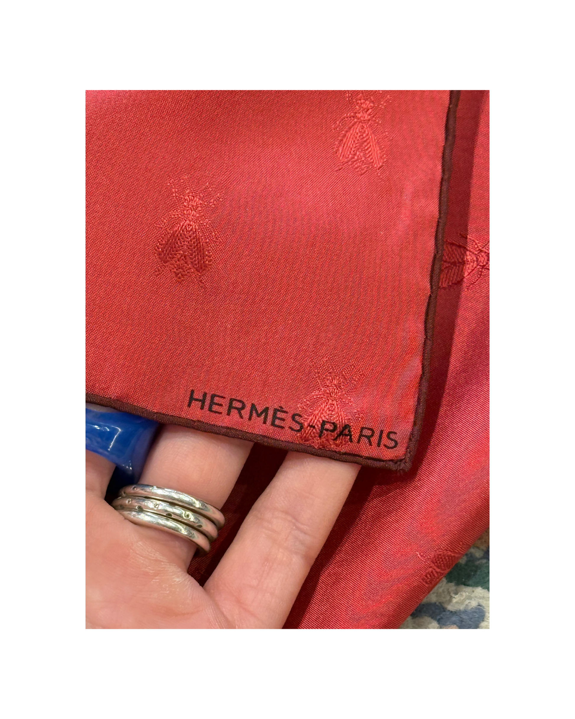 Carrè 42 "Abeille". Eleganza minima con un tocco di ironia firmata Hermes. Questo carrè in pura seta color rosso bordeaux presenta un delicato motivo jacquard tono su tono con api, perfettamente visibili a seconda della luce.