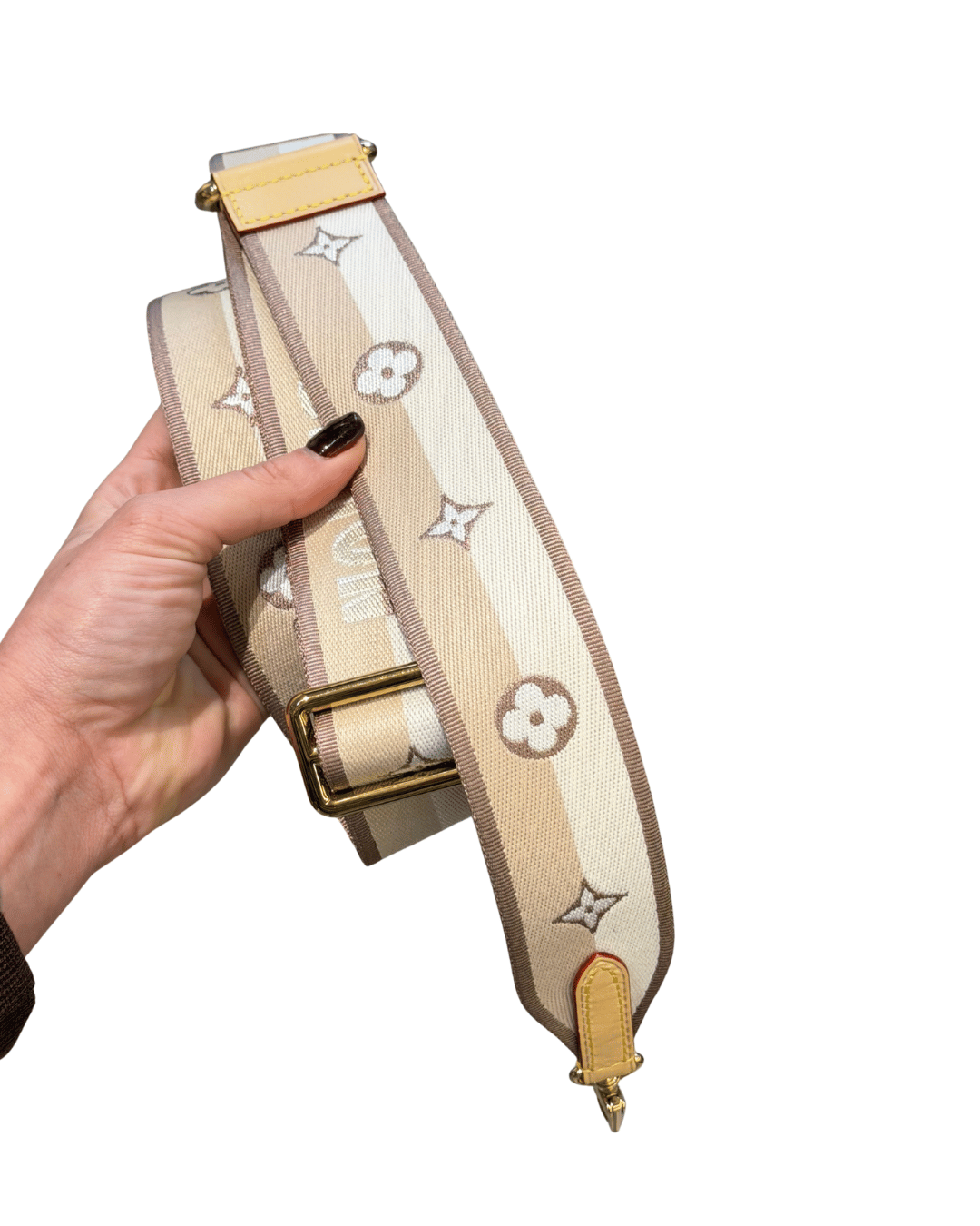 Iconica e contemporanea, questa tracolla firmata Louis Vuitton è l’accessorio perfetto per dare un tocco immediatamente moderno e raffinato a qualsiasi borsa compatibile. Realizzata in tessuto jacquard nei toni del beige e crema, presenta la scritta LOUIS VUITTON a contrasto e i delicati dettagli Monogram lungo la trama, per un effetto elegante ma riconoscibile. Le finiture in vacchetta naturale e la minuteria dorata completano il design con un’eleganza senza tempo. Regolabile e pratica, è ideale per indossare la borsa a spalla o crossbody, aggiungendo comfort e stile in un solo gesto.