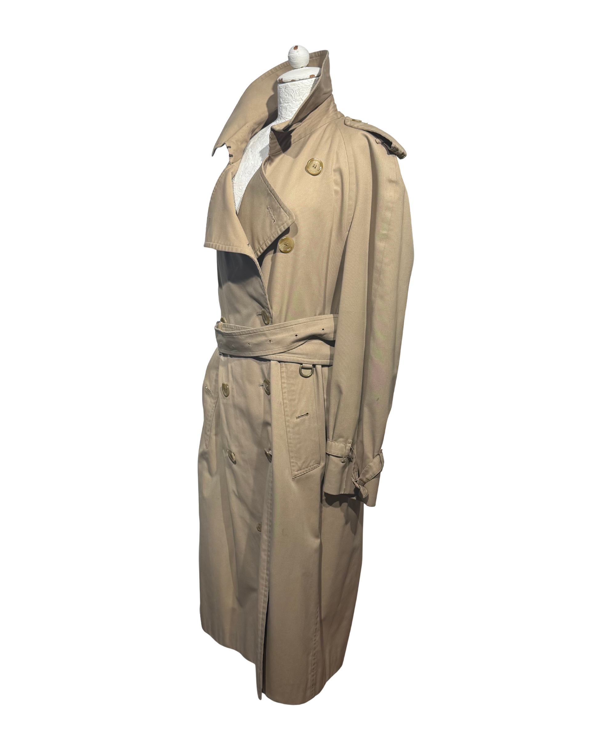 Iconico trench Burberrys realizzato in Inghilterra, un capo intramontabile che incarna l’eleganza senza tempo del brand britannico.