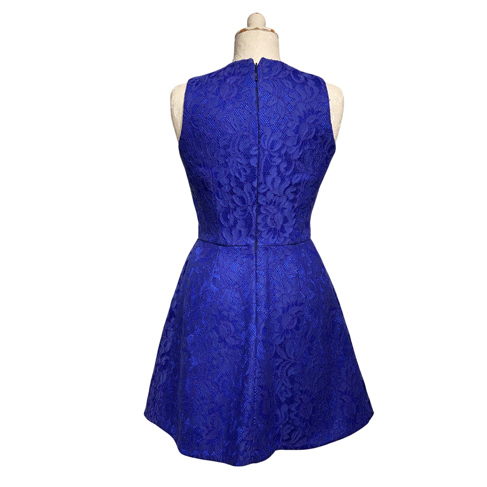 Tubino MSGM blu elettrico , trama in pizzo. Spacco in corrispondenza della parte frontale. Interno fodera nera. Apertura posteriore con cerniera.