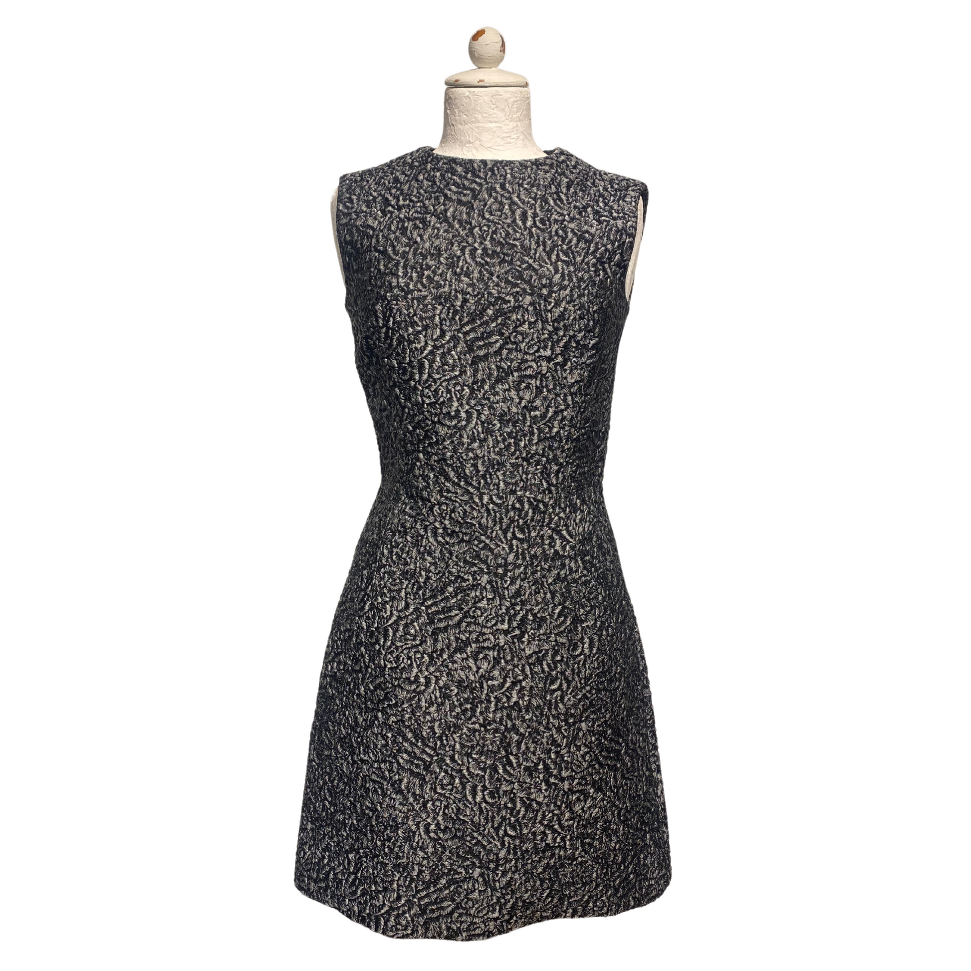 Tubino di Balenciaga , tessuto grosso, trama nera e grigia. Senza maniche , scollo rotondo. Apertura posteriore con cerniera. Interno tessuto nero. Molto aderente.