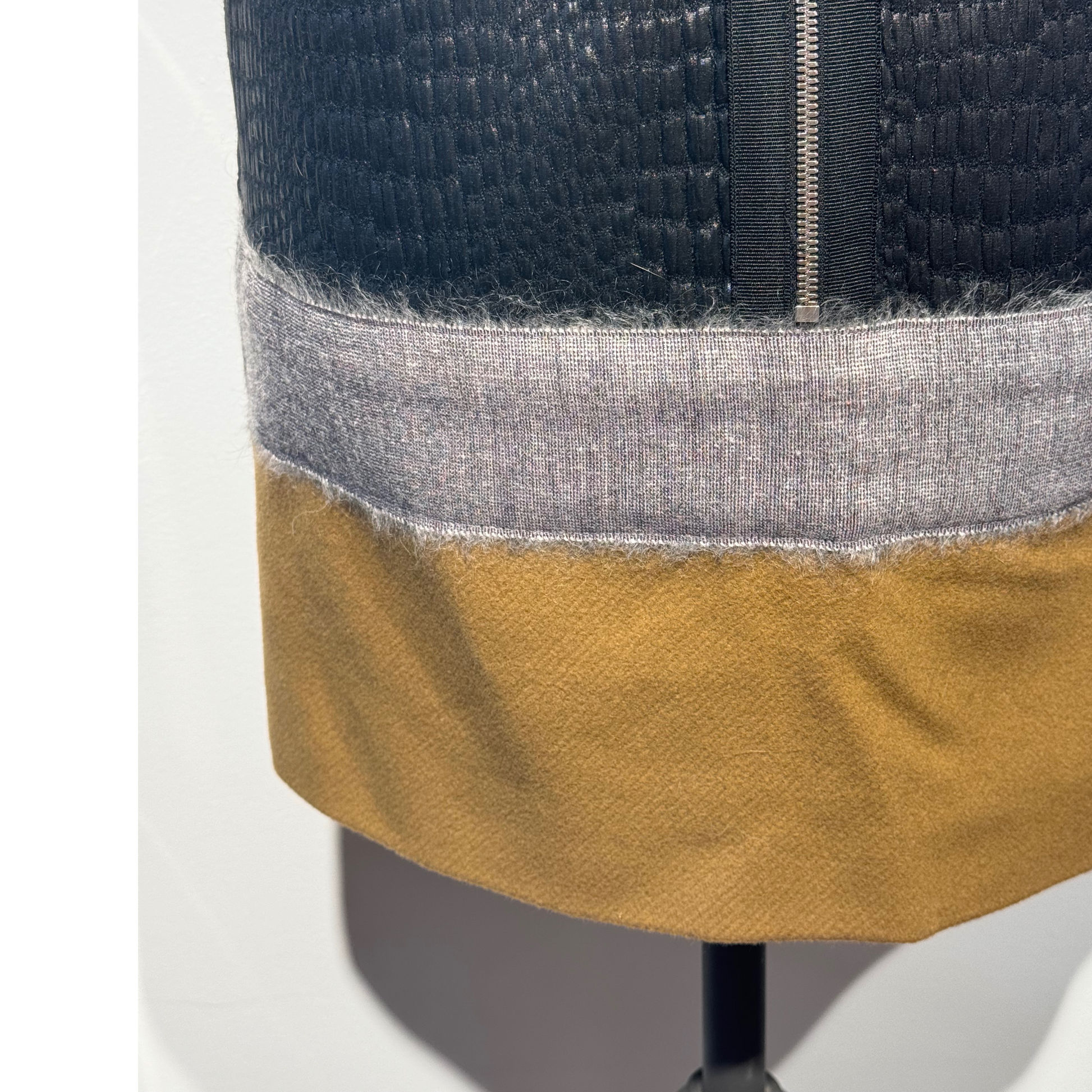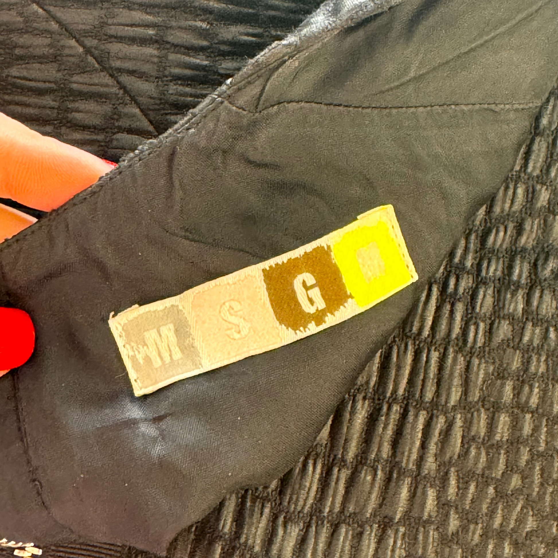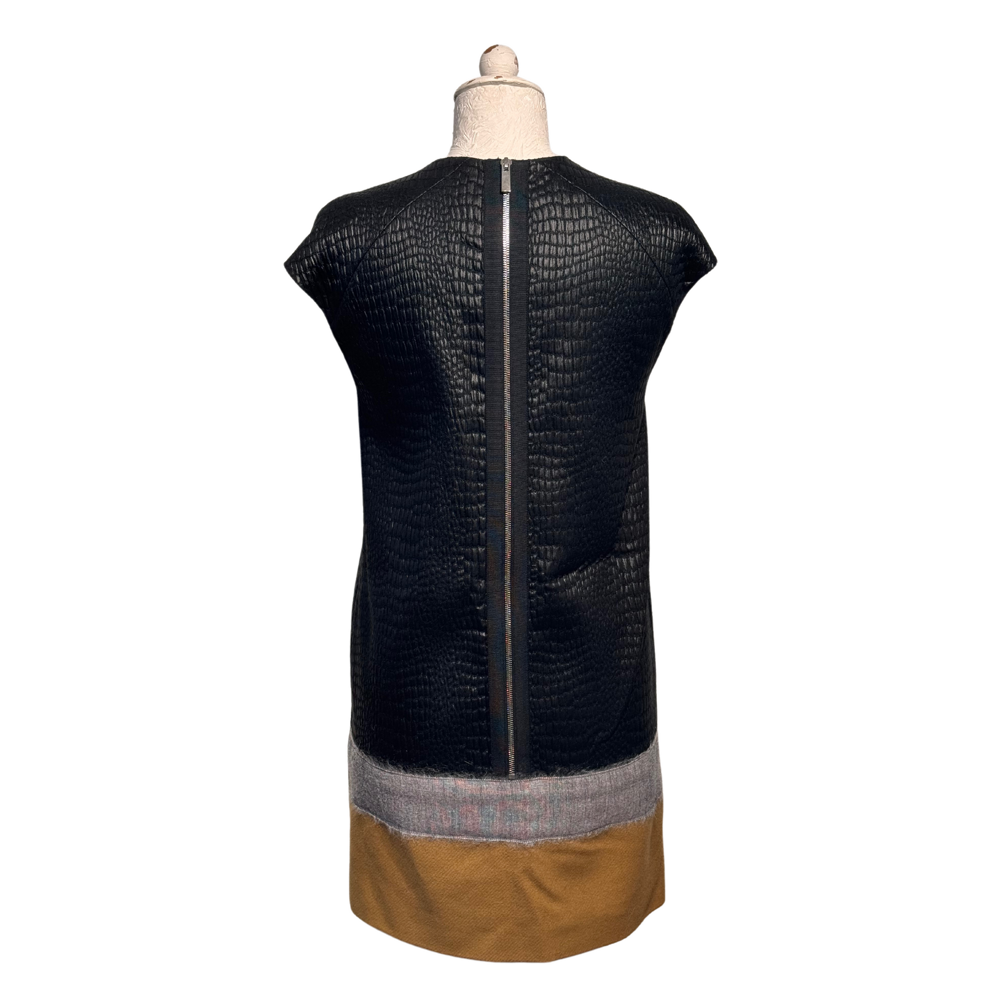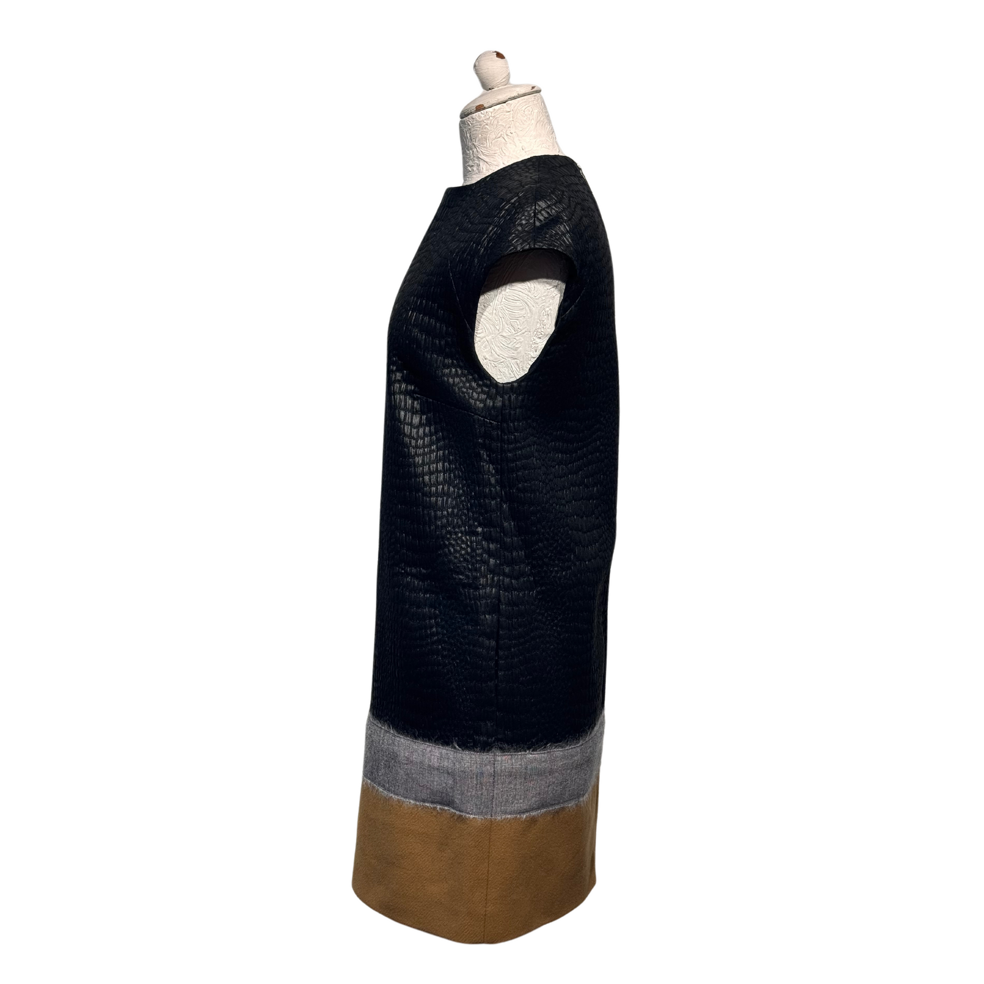 Vestito MSGM effetto pelle nera, base grigia e beige. Smanicato con cerniera posteriore argento.